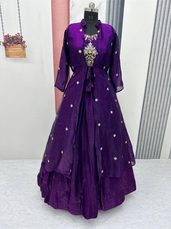 Embrace the festive spirit with our stunning Festival Special Lehenga Choli, featuring a chic crop top and elegant shrug! (Product Code: PC-527)