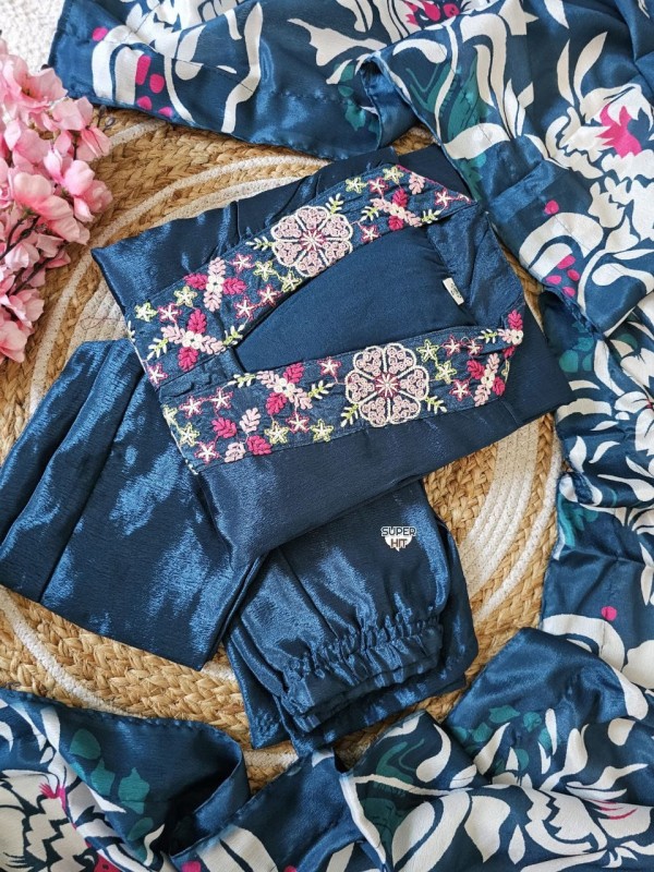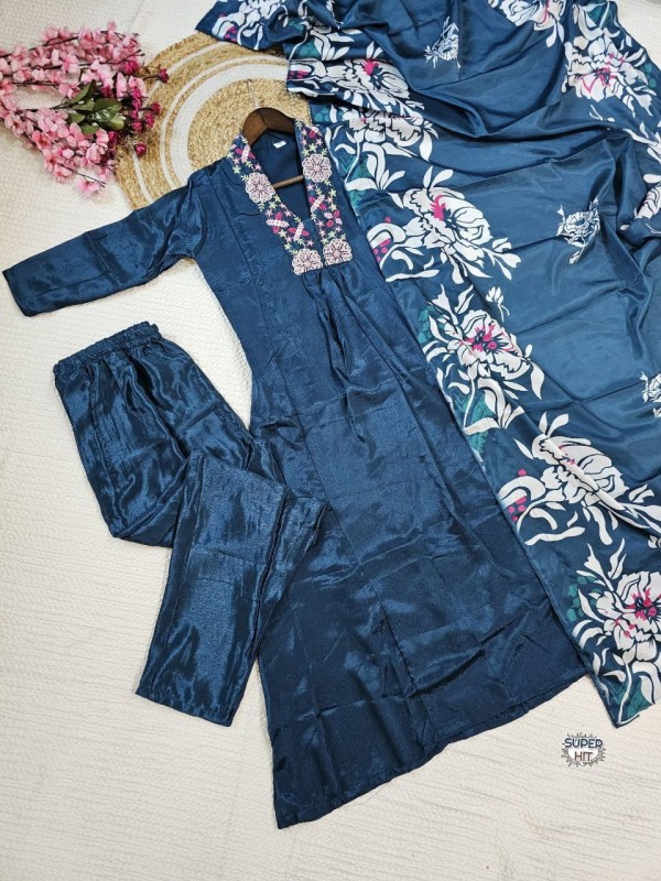 Fully Stitched Heavy Chinon Kurti Set with Embroidery & Zari Work Premium 3 Piece Suit