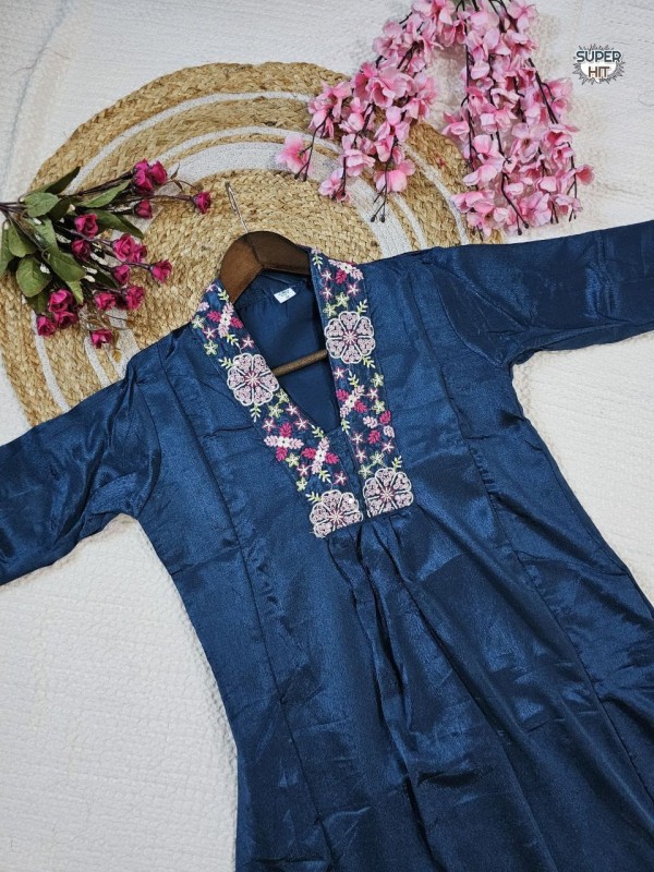 Exclusive Fully Stitched Viscose Chanderi Kurti Set with Heavy Hand Embroidery & Jacquard Dupatta 3 Piece Premium Suit