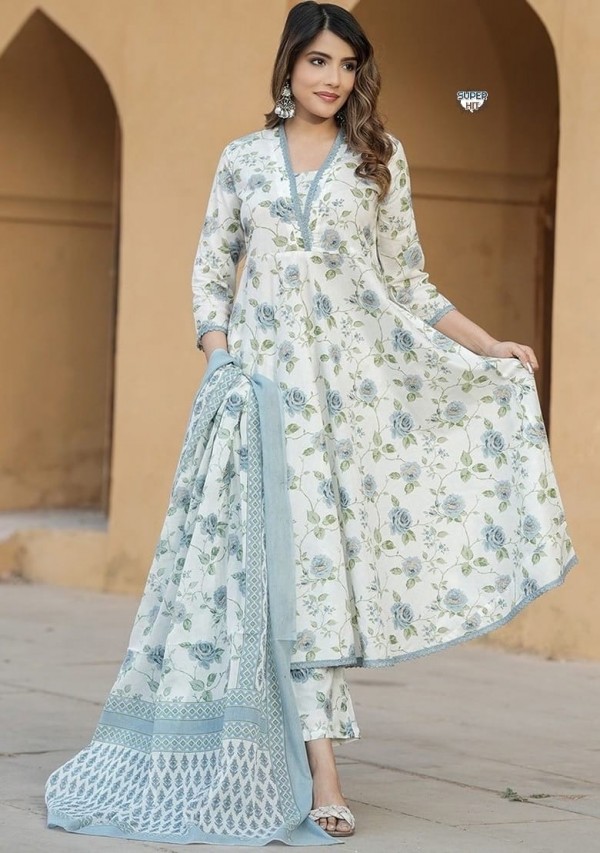 New Arrival Festive Anarkali Kurti Set Cotton Collection - 1303 (DASTUR)