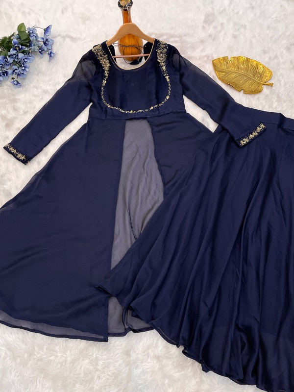 Premium Rangoli Silk Lehenga Choli Set with Handwork Neck Design Blue & Wine