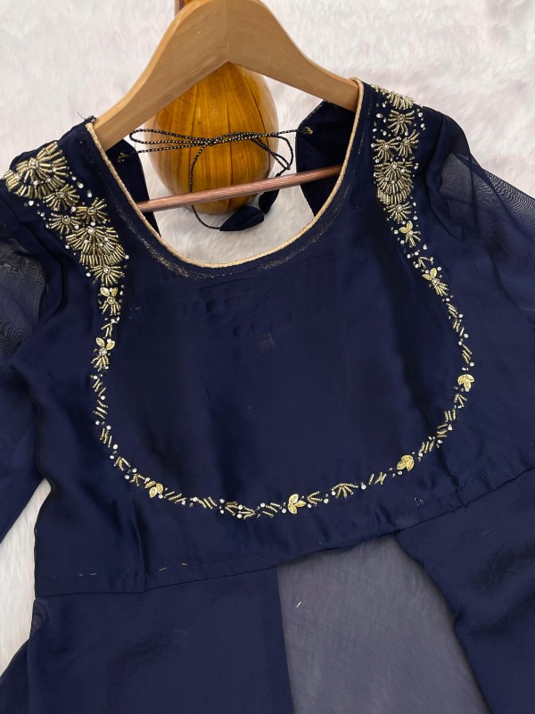 Top (Kurti/Choli): Made from Pure Rangoli Silk with an eye-catching neck pattern and intricate handwork. (Length: 52 inches)